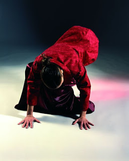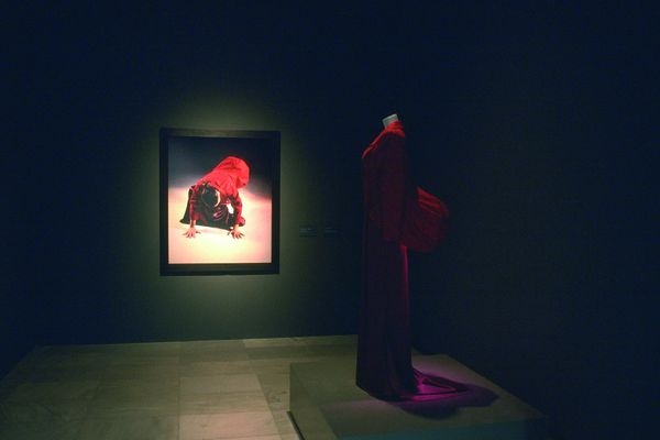 Luciérnaga I, Algodón rojo, estructura metálica y bombilla roja, 155x45x50cm, Exposición Trampas y Seducción, Sala Alcalá 31 Consejeria de Cultura y Deportes de la Comunidad de Madrid, 2004 |
