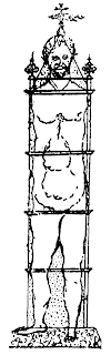 La torre la entenderemos como una alegoría del cuerpo humano, así que el rayo resulta que decapita el motor intelectual y racional del hombre. La similitud del rayo de la ira divina con el relámpago no es casualidad.