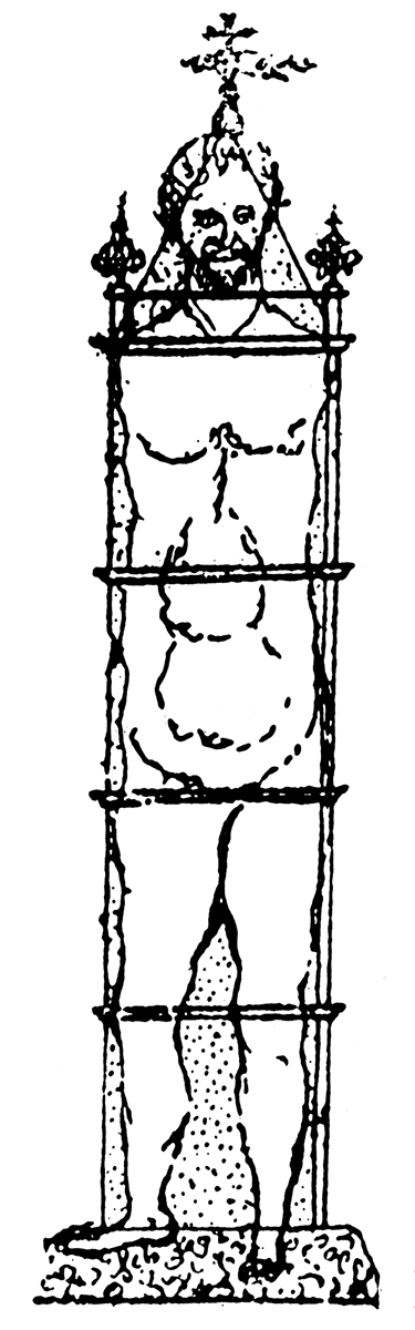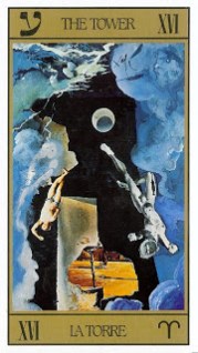 | Alzado de una torre. Simón García, «Compendio de Architectura», 1681 | Salvador Dalí, «La Torre». Tarot Universal Dalí, Naipes Comas y Distribucions d’Art Surrealista S.A. |