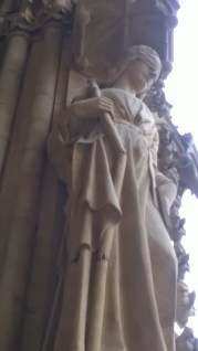 Permanece en pie frente a la catedral. A menudo contempla la portada de la Virgen en la que hay una escultura femenina con los ojos vendados. Según leyó, representa la Sinagoga, a los judíos que no quisieron ver la supuesta verdad mesiánica del cristianismo. A Stéphane siempre le ha fascinado la media sonrisa de ese personaje aferrado a lo que parece unas tablas y un pergamino.