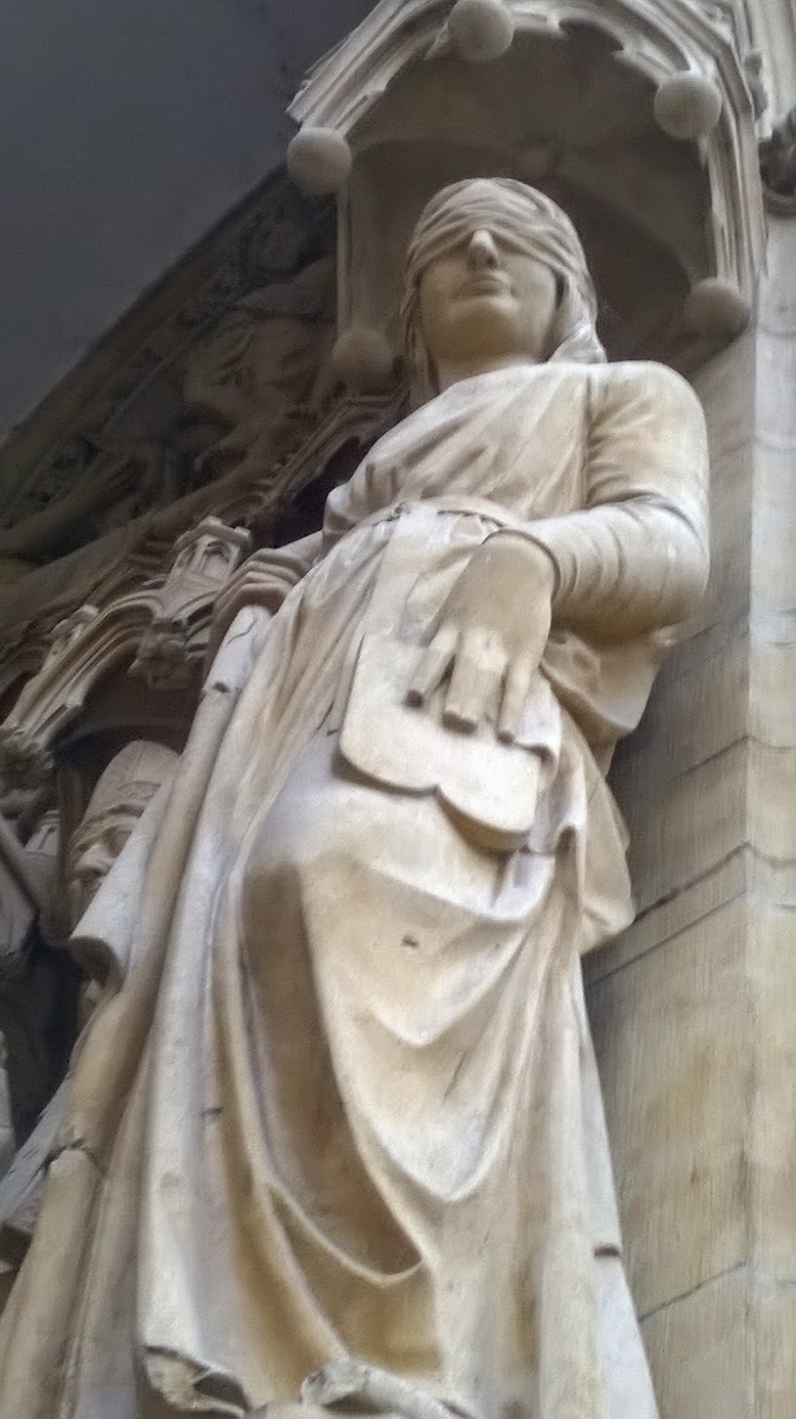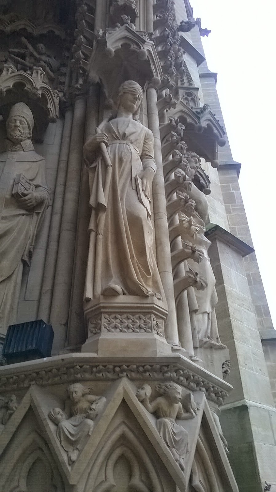 Permanece en pie frente a la catedral. A menudo contempla la portada de la Virgen en la que hay una escultura femenina con los ojos vendados. Según leyó, representa la Sinagoga, a los judíos que no quisieron ver la supuesta verdad mesiánica del cristianismo. A Stéphane siempre le ha fascinado la media sonrisa de ese personaje aferrado a lo que parece unas tablas y un pergamino.