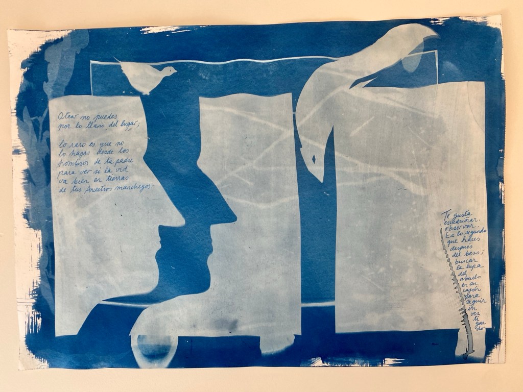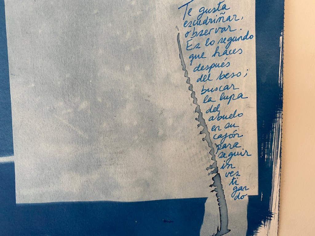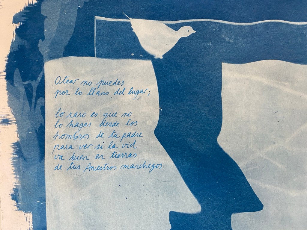 A mis 43 años he aprendido a hacer cianotipias y ésta es una de las primeras que han salido. Yo no sé a dónde va esto, pero investigar tiene que ver con el disfrute y, el disfrute, con saber vagar y otear.