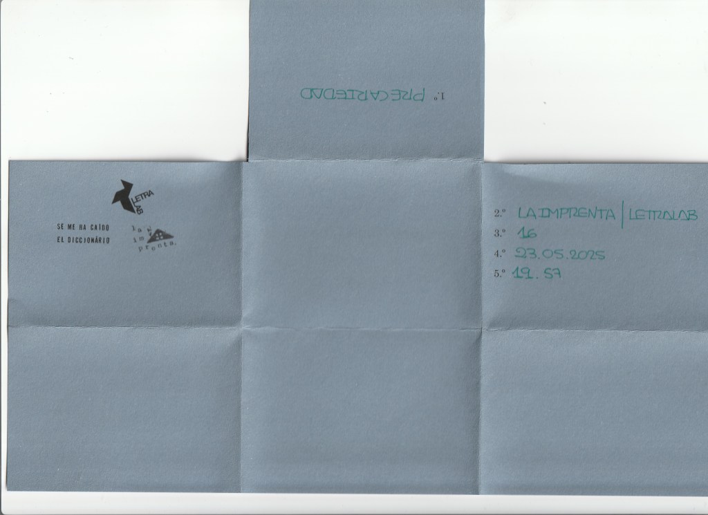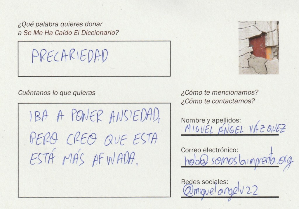 Una palabra donada por Miguel Ángel Álvarez, respondida Ángel en la sesión de Escribir telegramas para donantes de palabras, con LetraLab, en la librería La Imprenta, Madrid.