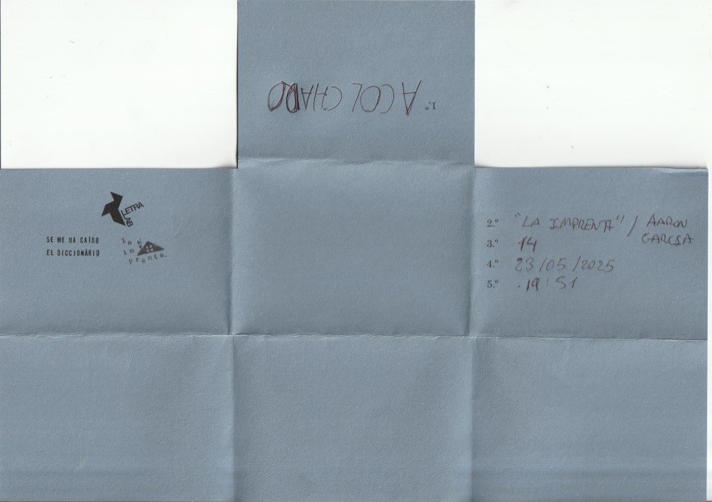 Aarón García ha respondido a esta palabra durante la sesión de Escribir telegramas para donantes de palabras, con LetraLab, en la librería La Imprenta, 23 de mayo de 2025, Madrid.