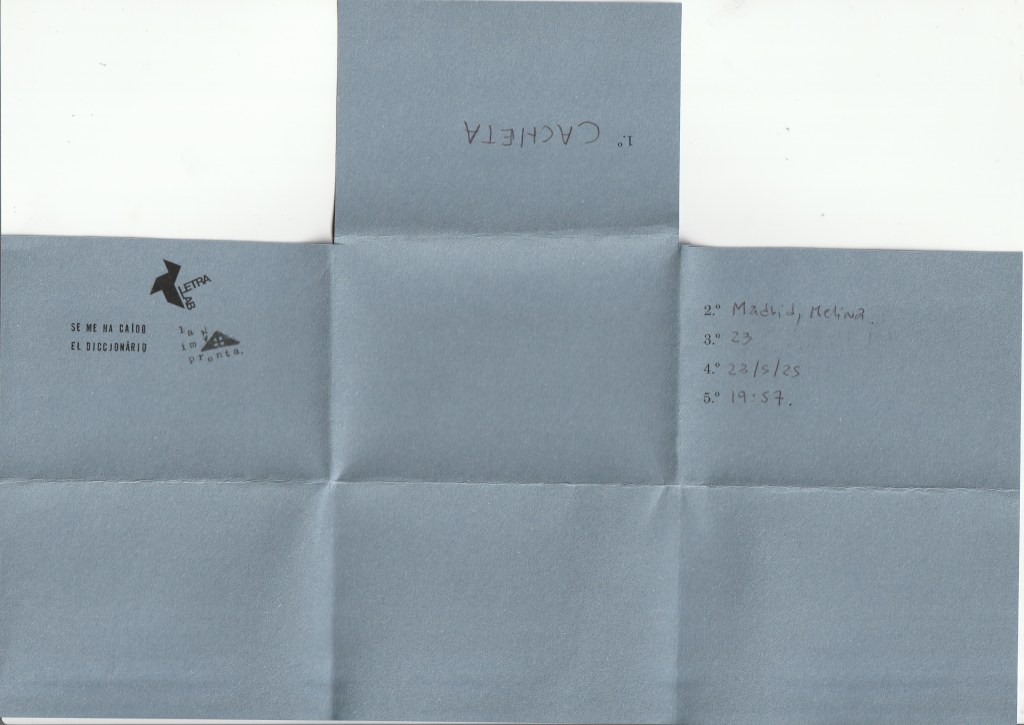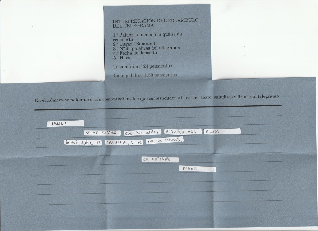 Melina ha respondido a esta palabra durante la sesión de Escribir telegramas para donantes de palabras, con LetraLab, en la librería La Imprenta, 23 de mayo de 2025, Madrid.