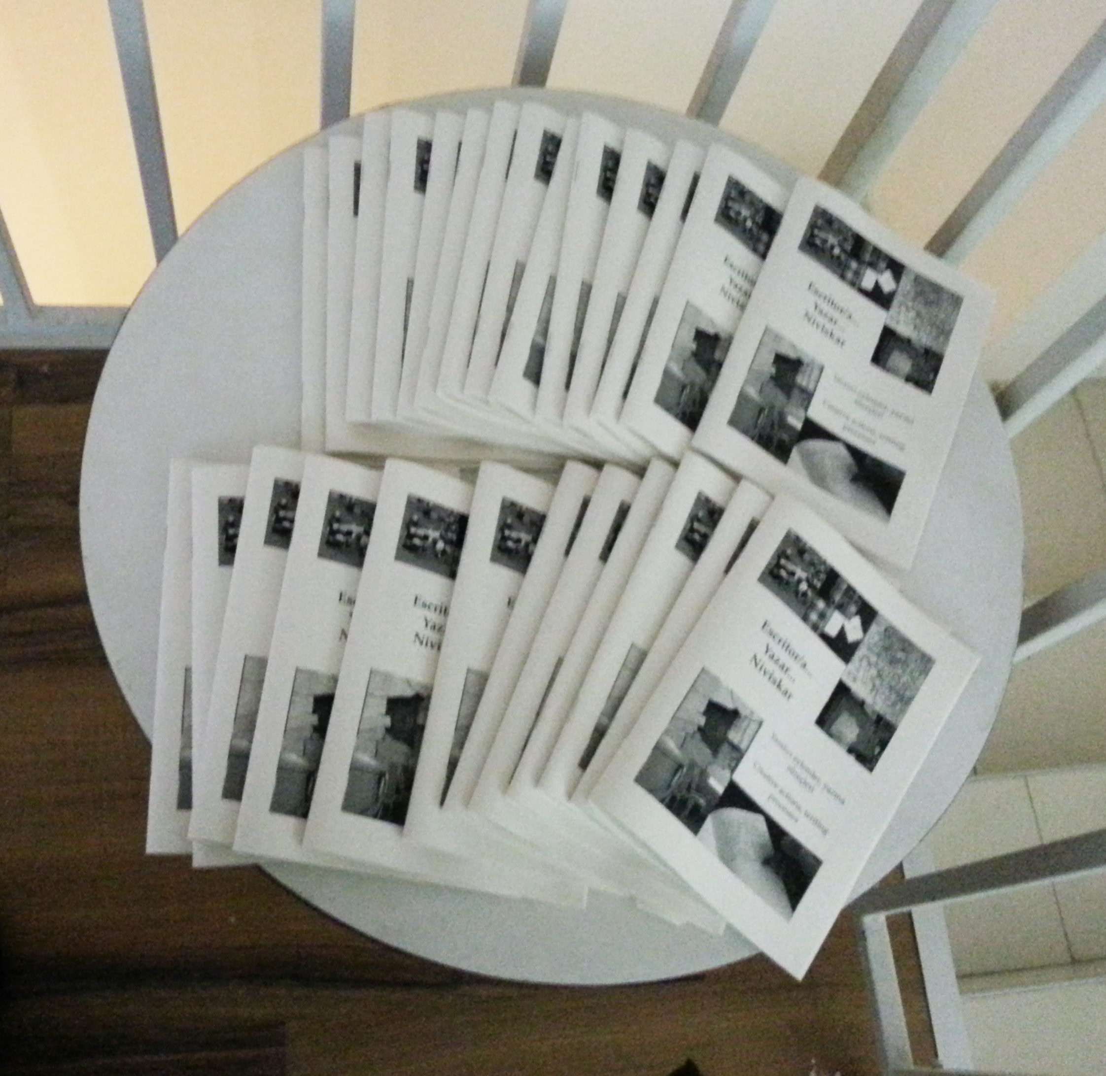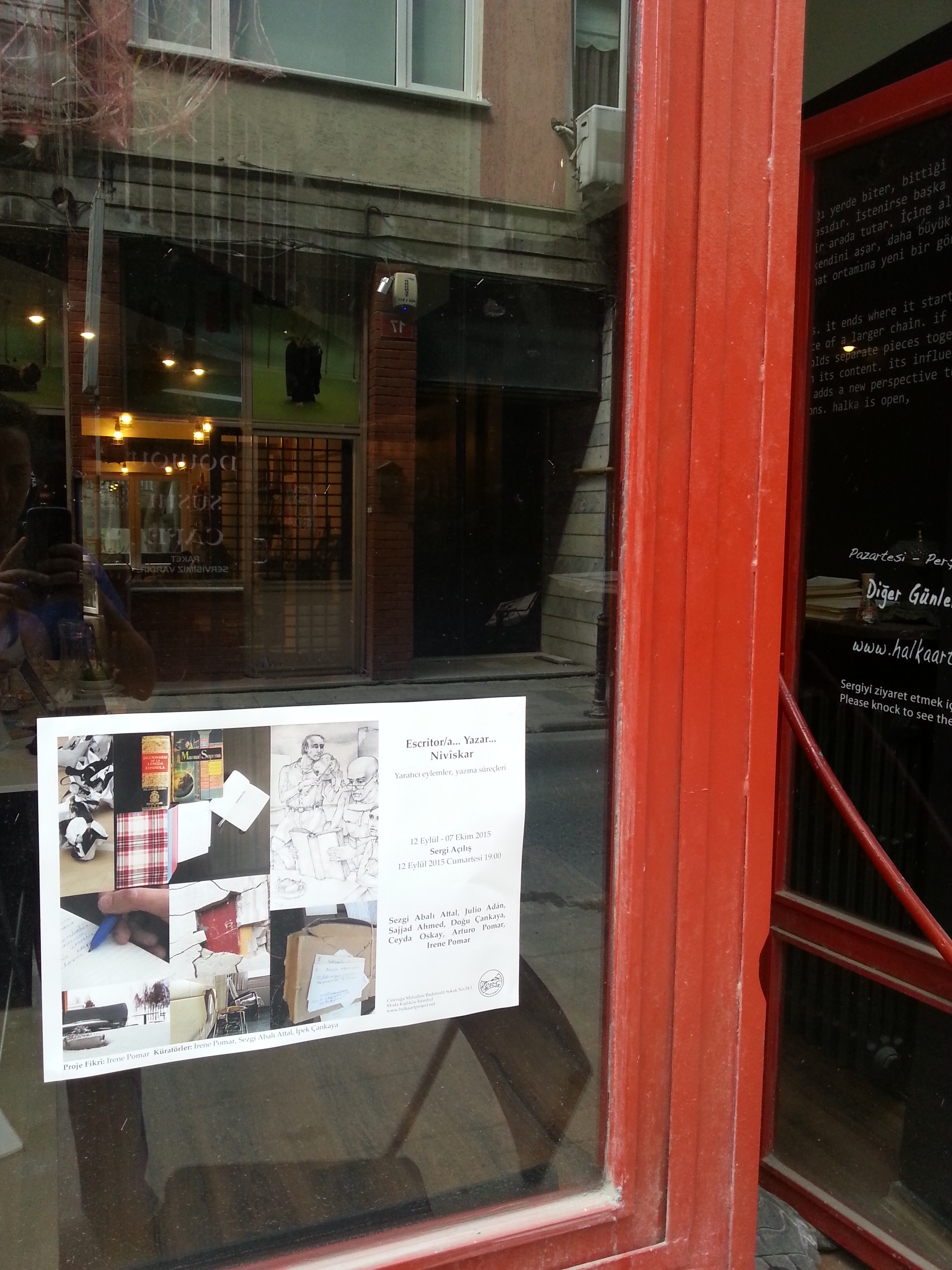 Escritor/a…Yazar… NivîskarCreating Actions, Writing ProcessesSeptember 12 – October 07 2015, halka sanat/ galeri İstanbulSezgi Abalı Attal (TR), Julio Adán (ES), Sajjad Ahmed (PK), Doğu Çankaya (TR), Ceyda Oskay (TR), Arturo Pomar (ES), Irene Pomar (ES)Project Conceived by Irene PomarCurators: Irene Pomar, Sezgi Abalı Attal, İpek ÇankayaINTRODUCTIONVisual Writing As An Inseparable Part of the Creative ActionRegardless of the chosen medium, the artists write their stories with the meticulousness of an author to share the bugs nibbling their head with the insight of the impossibility of keeping them for themselves.Their writing becomes a way of developing a personal intervention and a life struggle, as well as it reveals a proof of self-existence and conception.Establishing a point of departure with their questions, contradictions or unconscious flows, the artists initiate a journey which would sometimes be dark for them and sometimes eye-catching. They choose a plot or a framework, determine a method of expression,and form their own narrative. They convert action into a language.At this point, once the language is transferred through visuals, words or signs lose their importance. On the contrary to those who cannot outreach the shallow seas or run after fake glows, those who continue their journey with an appetite, without becoming dull in themselves and in their work, become candidates to spin around the world a few times or to hold a mirror for those who see no daylight.Some speak more and some speak less. When the action replaces words, the writing is visualized.The diversity of expression comes from the nature of the action. Artists create, build and embrace as much as the breath fills their chest. For that reason some tell more, some tell less.However, if they sincerely follow the signs, despite the variety of the chosen paths, they transcend their personal limits and come back in a place where their hand meets with their mind, their suspicions with their curiosity.When the process comes to an end, the creative action finds its voice. As the ability, the appetite and the endurance of the artist and their words-to-say grow, the act of writing also flourishes, changes its appearance and creates a unique output as it is the case with every work solemnly executed.When the circle gets larger like the circles in the sea, the work is invited to stand under the lights by other writers who interpret it and who want to communicate it to others. So, the exhibition process begins with the collaboration of the artist and the curator.Escritor/a… Yazar… Nivîskar means “writer” in three languages and makes the title of an exhibition by seven visual artists who are in the pursuit of individual languages in their narratives. The subtitle “creative actions, writing processes” refers to the diversity of the performative act of creating and the intermingled connections within the artistic field. These connections can be between the artist and the work, the production and the presentation and among the artists from different disciplines, the curators and the audience.As I think that the authorship is not relevant to literature only, I presume that “writing as an inseparable part of the creative action” can be a secondary phrase that complements the title. Therefore I have chosen it as my title to this introduction.The exhibition salutes visual artists who develop, convert and collect signs, no matter what their media are and the form of the narrative they prefer. It also bonds different aspects of the creative action carrying innate writing processes in them.İpek Çankaya06.09.2015Bodrum